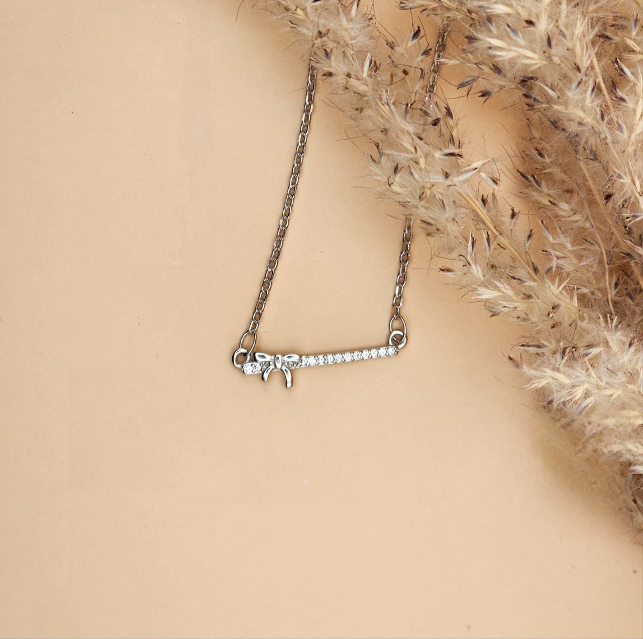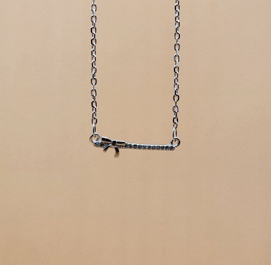 گردنبند نقره طرح بار و پاپیون نگیندار