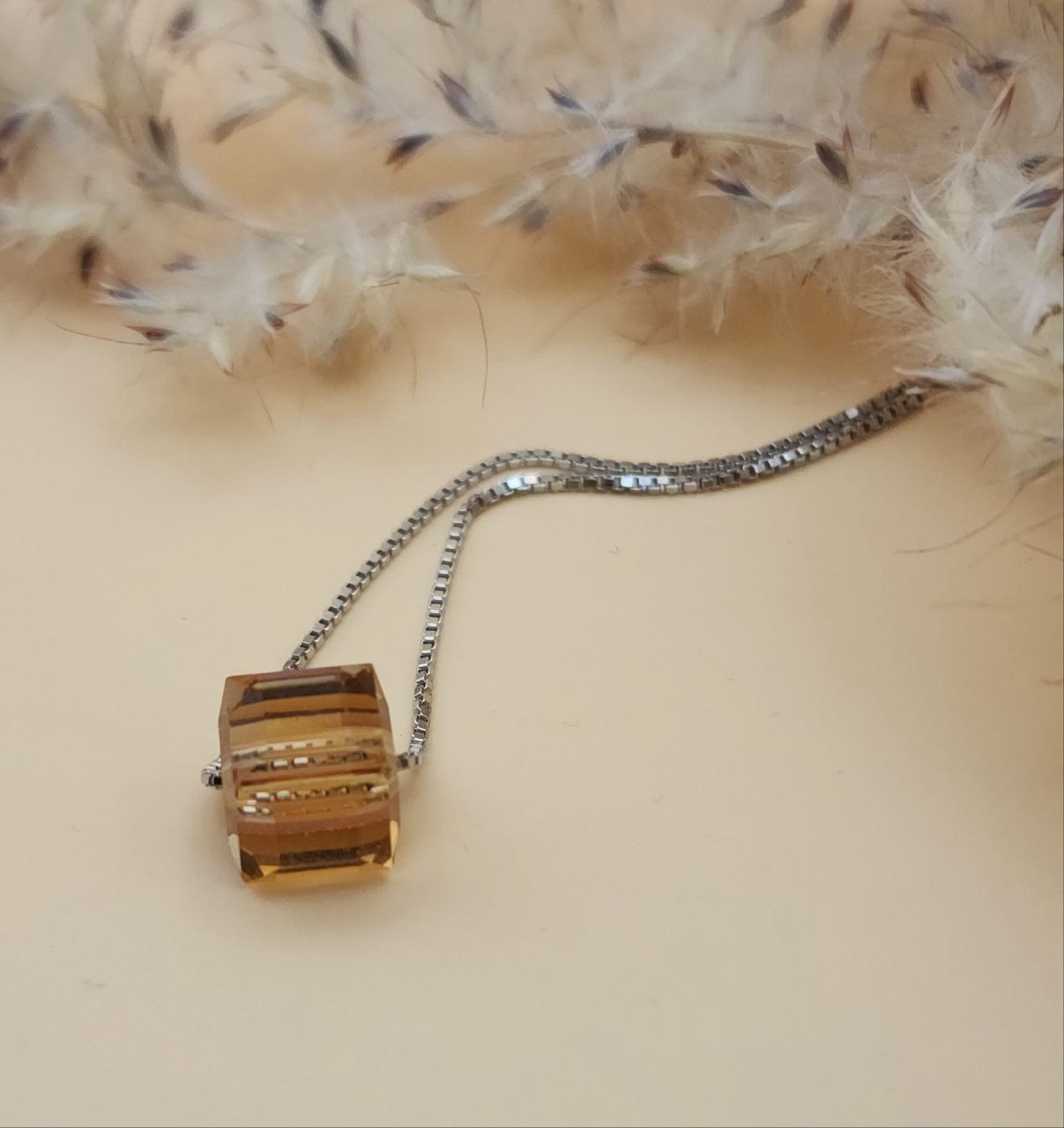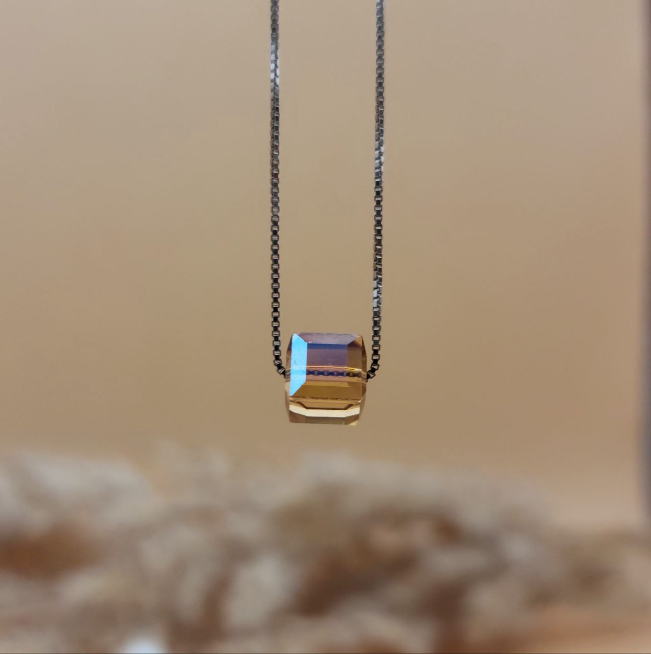 گردنبندنقره زنانه ایتالیایی مدل سواروسکی طرح مکعب