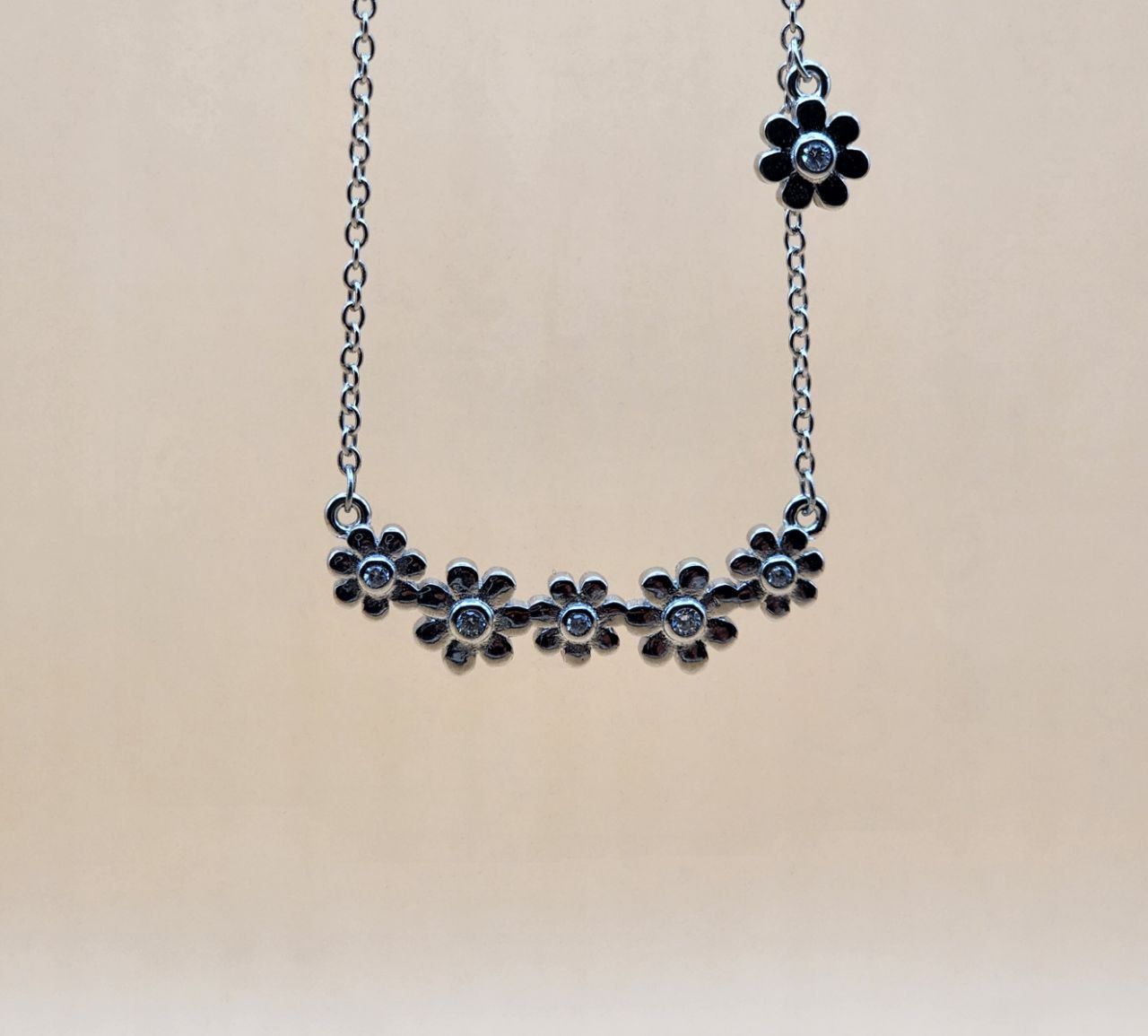 این گردنبند زیبا و ظریف با طراحی مینیمال و مدرن، جلوهای شیک و جذاب به استایل شما میبخشد. ساخته شده از نقره باکیفیت طرح گل ، این گردنبند جلوهای لوکس دارد که نگاهها را به خود جلب میکند.
