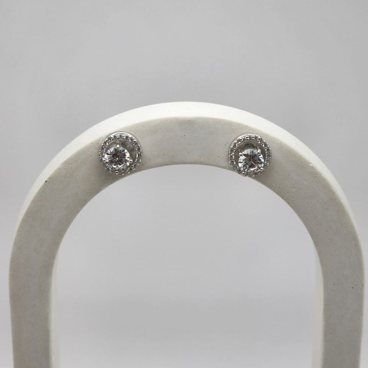 ست گردنبند و گوشواره نقره طرح کلاسیک نگیندار