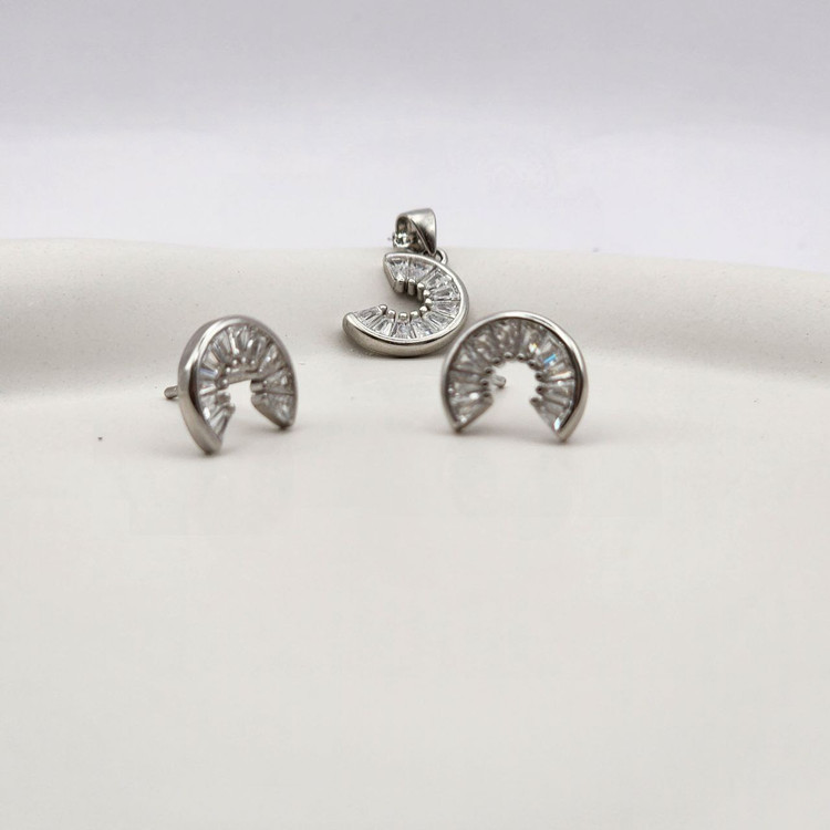 ست گردنبند و گوشواره نقره طرح هلال نگیندار