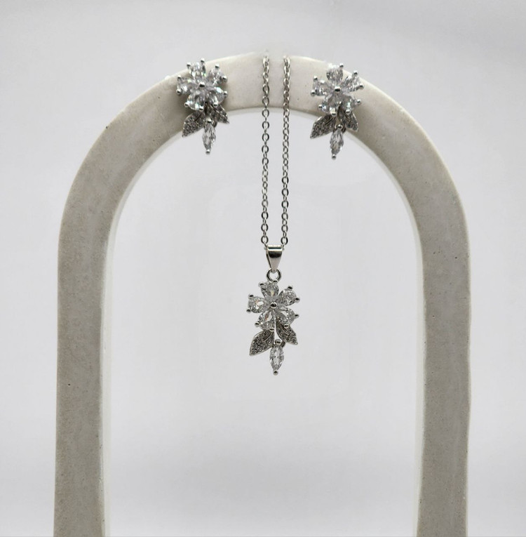 نیم ست نقره زنانه ایتالیایی طرح گلبرک نگین دار