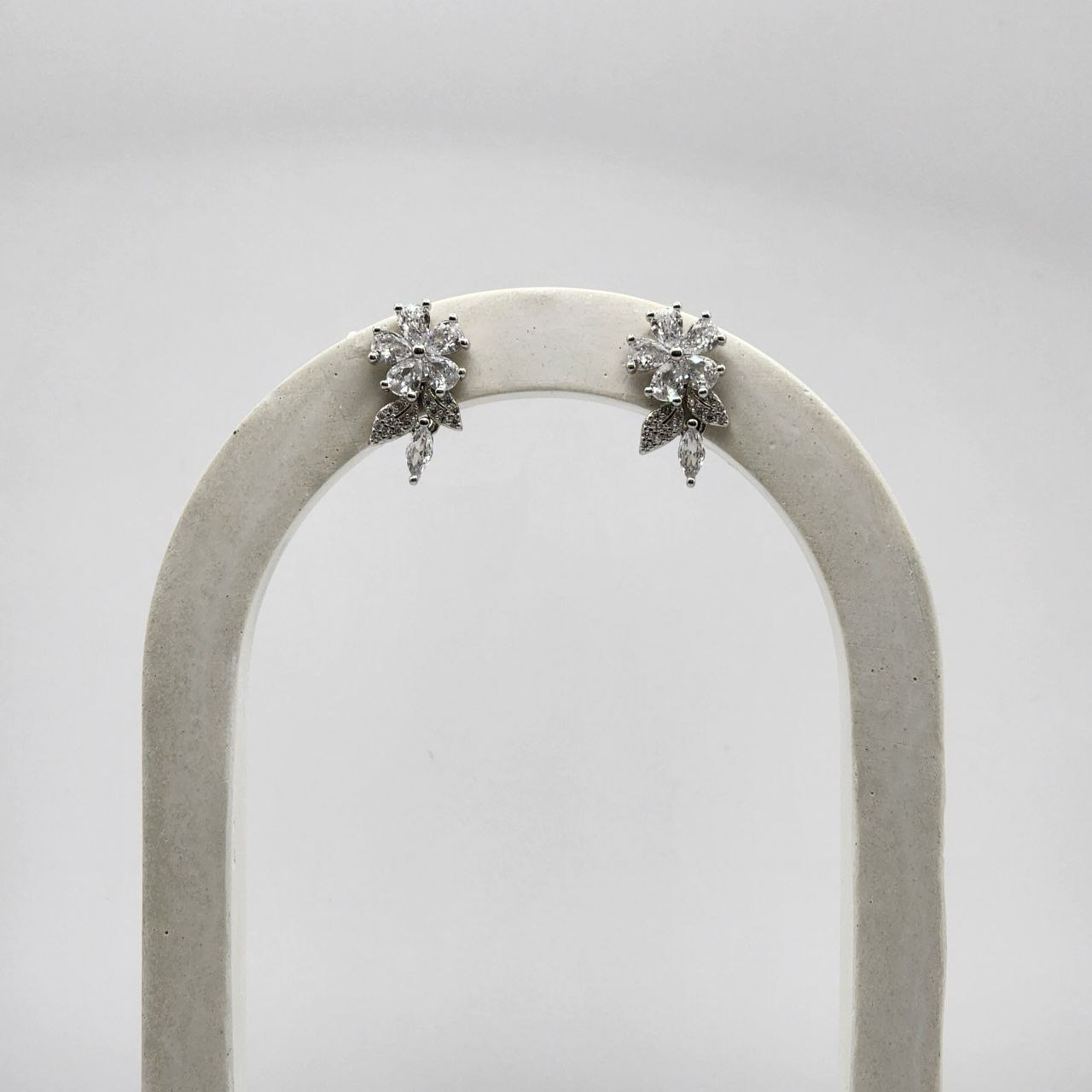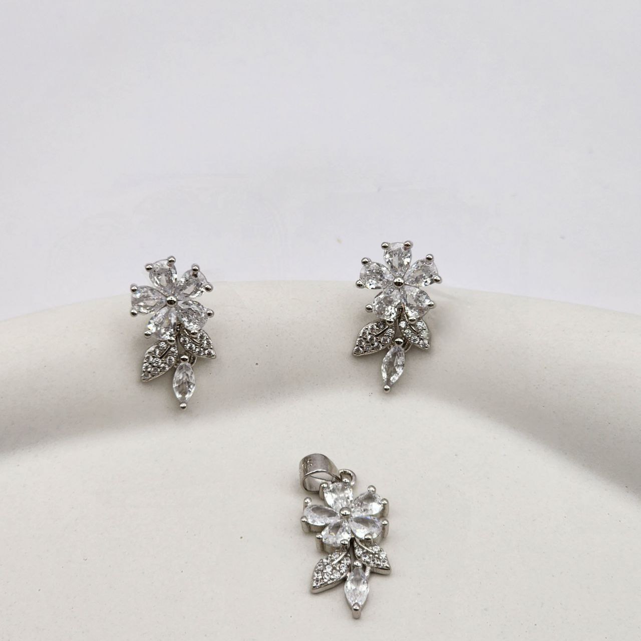 نیم ست نقره زنانه ایتالیایی طرح گلبرک نگین دار