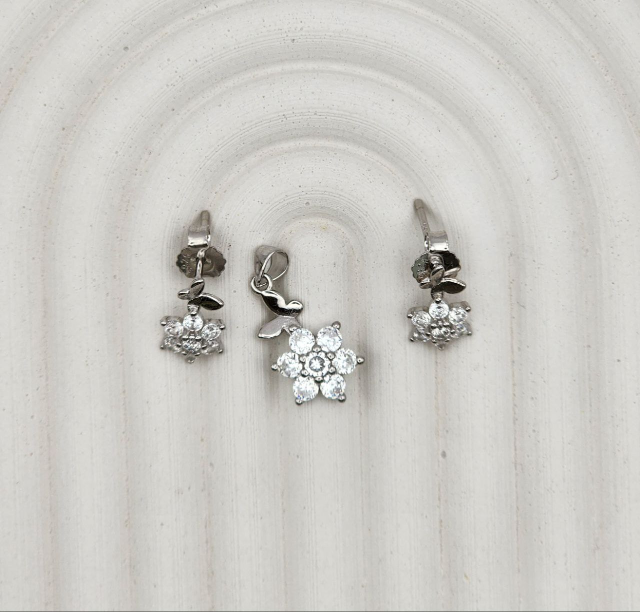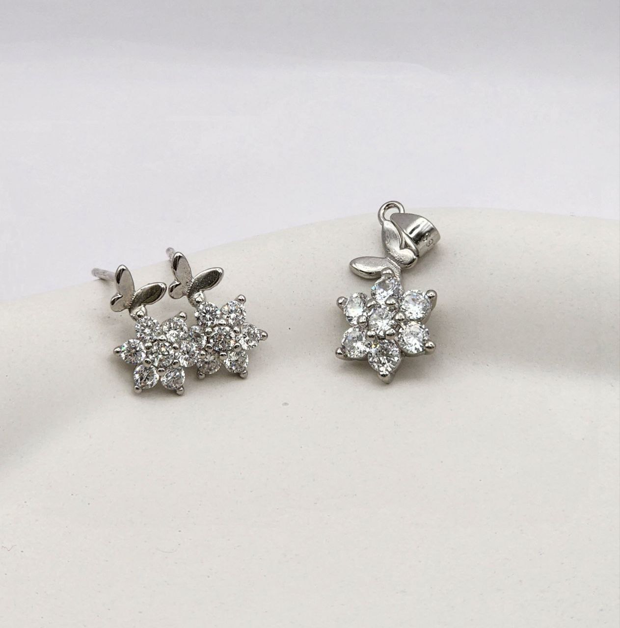 نیم ست نقره زنانه ایتالیایی طرح گل برجسته